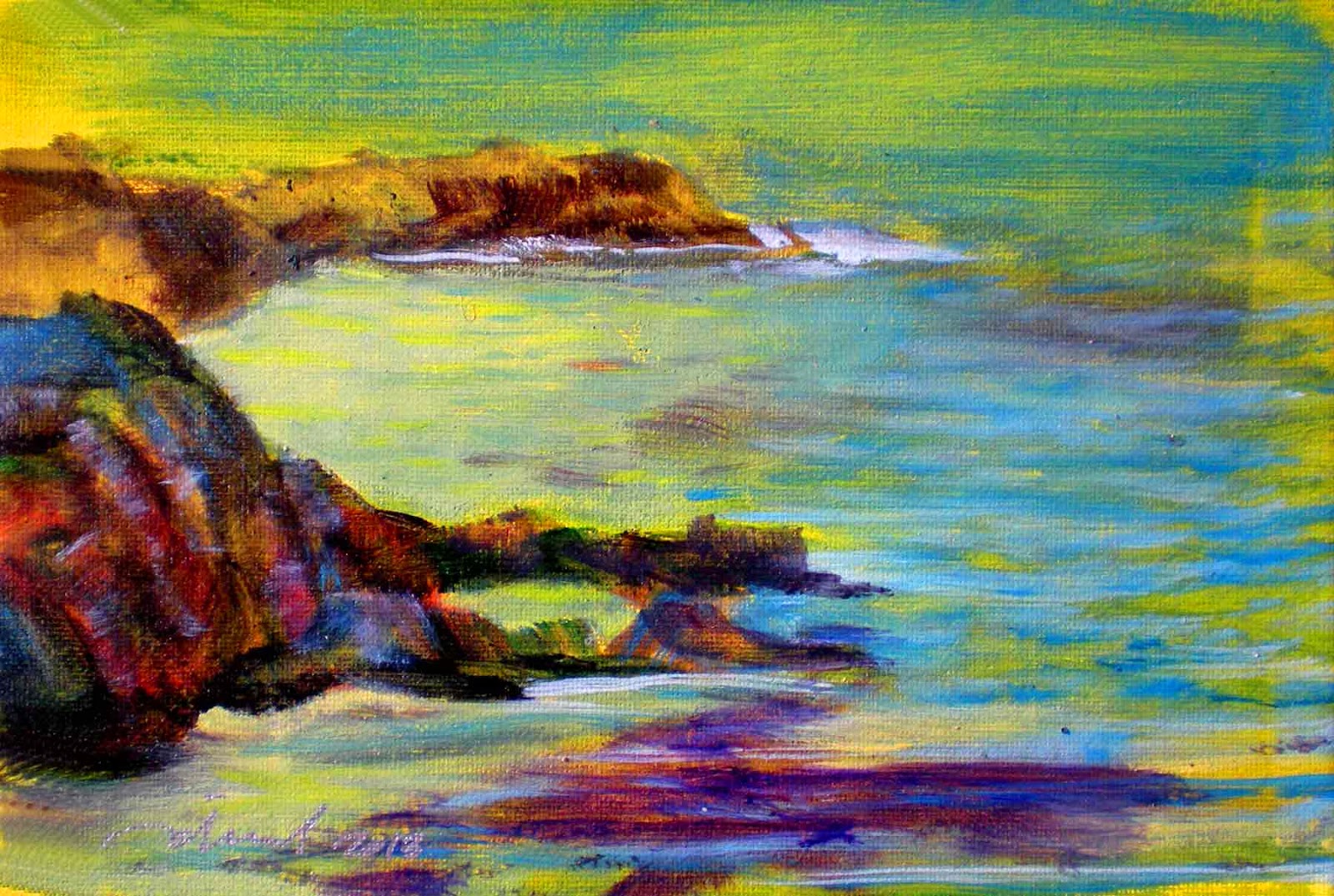 Plein air, for me, consists of totally immersing yourself in the act of painting - without hesitation, almost without thought - listening/smelling/feeling the environment - sand under your feet/sun on your face/breeze in your hair - and painting with abandon until the session is complete. I have coordinated the West Hawaii Plein Air Painters for the last six or seven years. We usually paint on Fridays in the morning because the light is better here coming over the mountain in the morning to our backs (face to the Pacific) and gradually clouding over to a glare around 1p. The encouragement, then, is to paint from 9a to 12:30p and FINISH THE PAINTING!!! An alla prima experience of the best kind. That's the philosophy of it, the mechanics and logistics of it are a lot more complicated then that - what to take - what to do without - easel? and on and on - stay tuned and we'll travel along this path together, I've got a lot to say that I've never said so this should be a good journey for both of us.